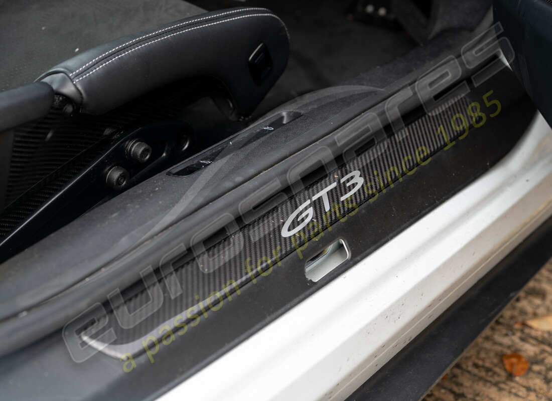 Black Carpet (colour code OX7), Roof lining, Alcantra (RoW),Racing carbon shell seats Front head restraint with stitched GT3 emblem,Sport Chrono Package Plus,Digital clock,Black Alcantara Sports steering wheel,Gearshift knob in Alcantara,Seat belts in Racing Yellow,Carbon decorative inlays,Door entry guards in carbon,Ultrasound parking aid,Radio "Premium",Digital radio reception (DAB),Mobile phone preparation,Connect package Plus 13,MIRRORLINK (CARPLAY/NLB),2 X USB/IPOD interface,Navigation device, High,Voice control,Sport optics pedals,VTS security package (with PCC),Cruise control system,Automatic anti-dazzle interior mirror,Sound package 1/sound package,Steering column, reach + height adjustable,mechanical,