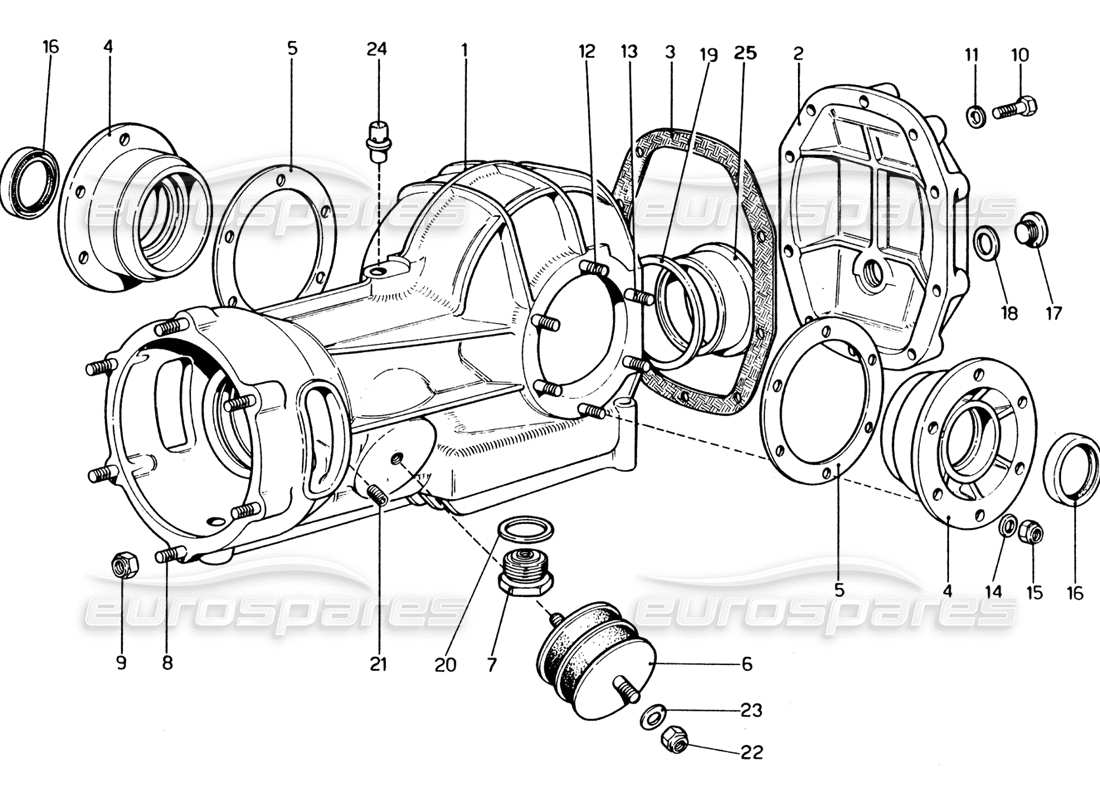 Ferrari 365 GT4 2+2 (1973) Diflerential Casing Parts Diagram