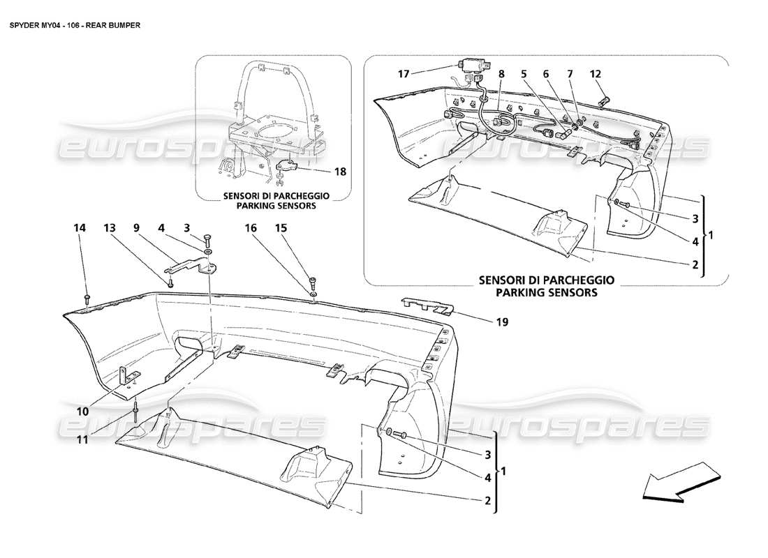 Maserati 4200 Spyder (2004) Rear Bumper Parts Diagram