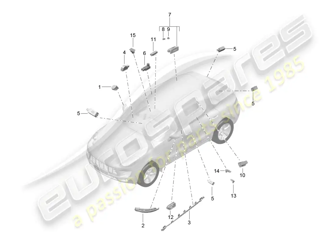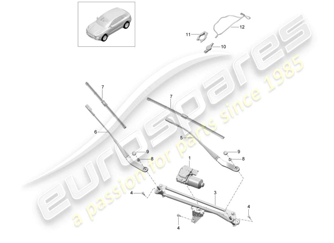 porsche 2017 (macan) windscreen wiper system, compl rain sensor parts diagram